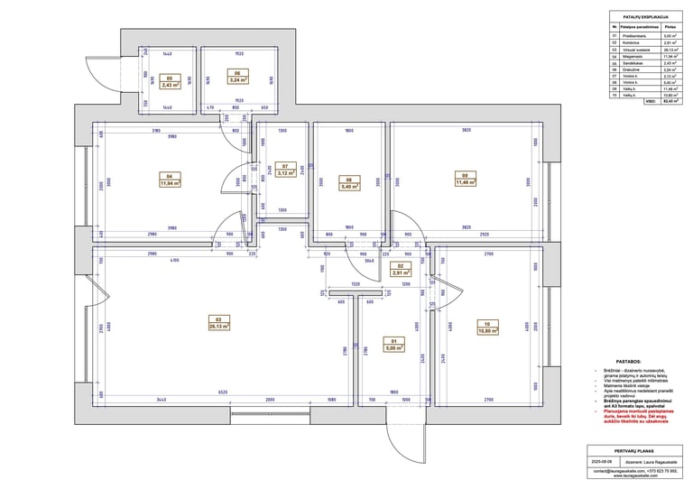 Sienų apdailos planas